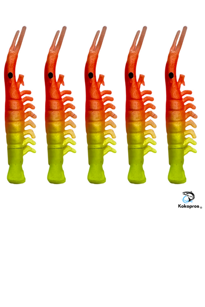 Shrimp - KOKOPROS®  4.5 cm UV Dyed Kokanee Shrimp #7 (5-Pack) Orange/Yellow