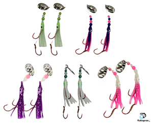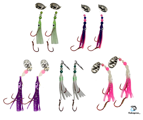 • LUMINOUS MICRO HOOCHIES WITH UV GLOW FOR BETTER VISIBILITY: These luminous micro hoochies feature UV glow colors that enhance their visibility in low-light or murky waters, making them perfect for attracting salmon and other fish species.
