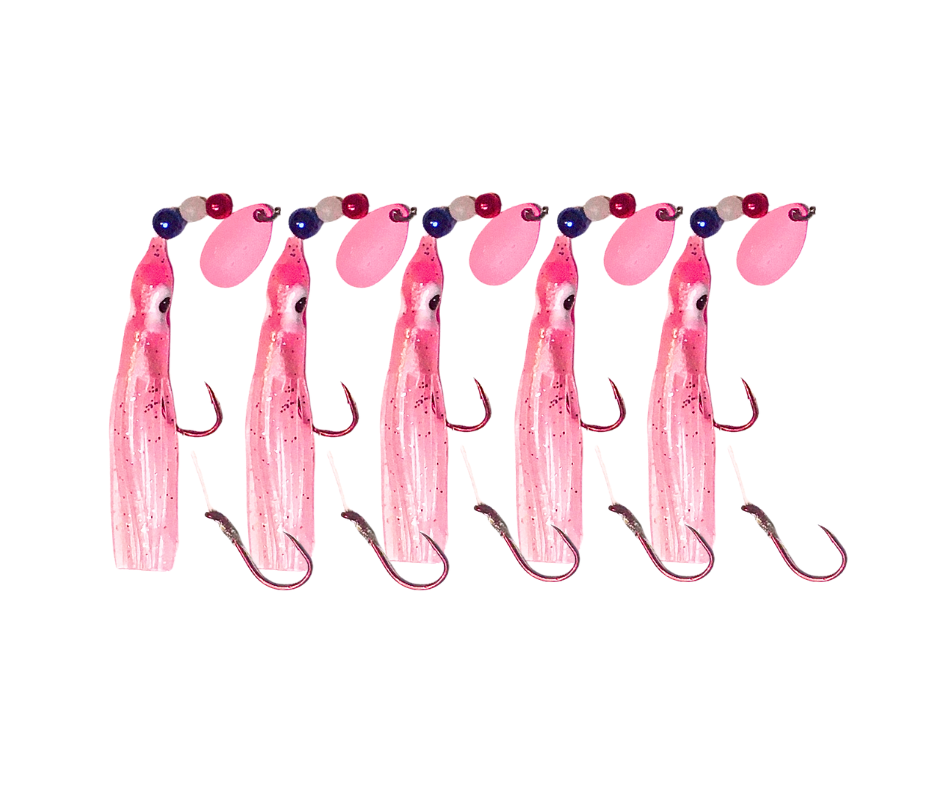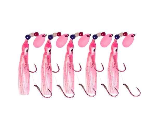 KOKOPROS® Hoochies- Lt Pink #1 Luminous Octopus Hoochies 6cm 5 PK