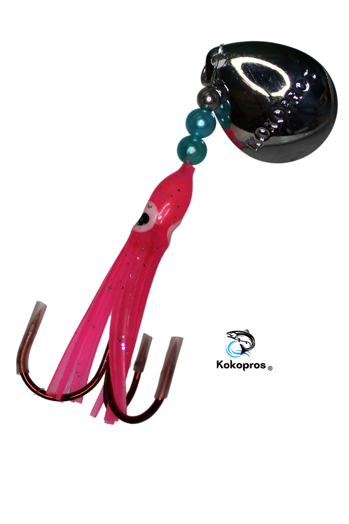 Salmon Tackle Kokopros®-Hot Pink #2- 2/0 Treble- Luminous Salmon Hoochie Kokopros Colorado Spinner Blade- (TREBLE)