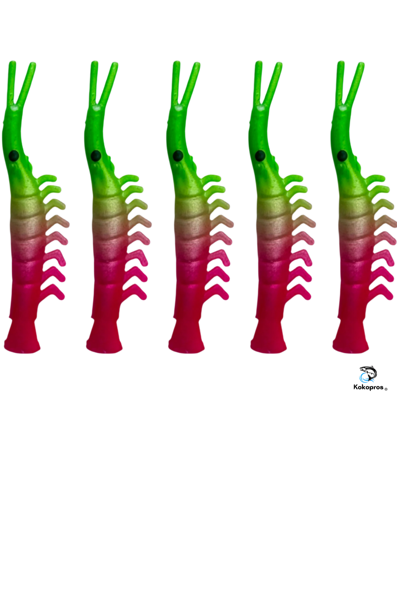 Shrimp - KOKOPROS® 4.5 cm UV Dyed Kokanee Shrimp #6 (5-Pack) Green and Pink