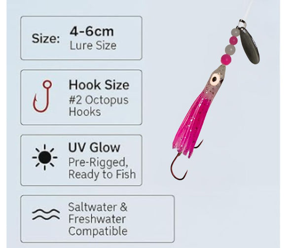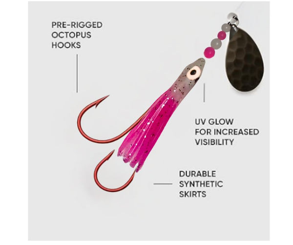 - READY TO FISH, NO ASSEMBLY REQUIRED: Pre-rigged and ready to go, these hoochies are easy to use and provide an efficient way to start fishing right away—no setup needed