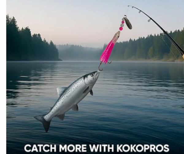 KOKOPROS®LUMINOUS Micro HOOCHIES: 4.5 cm Luminous Micro Hoochies in Pink Cotton Top color enhance visibility in low-light and deep-water conditions, perfect for Kokanee, salmon, and trout fishing.