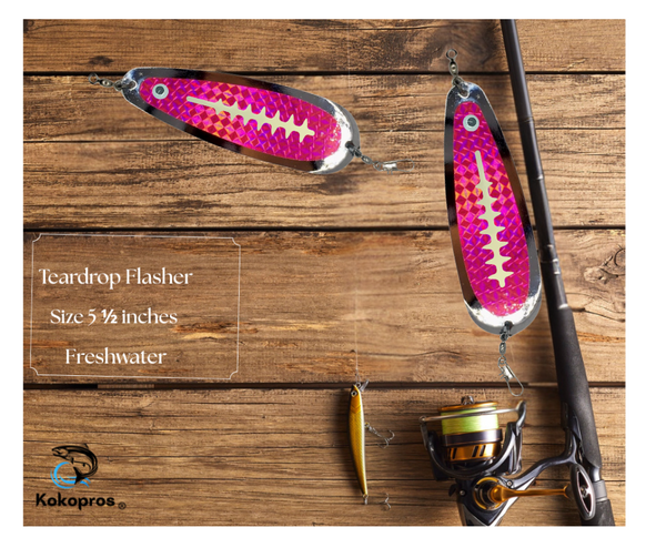 Dodger - KOKOPROS® *Flasher for Kokanee Salmon - Bright Vibrant Color for Attracting Fish - Durable Construction for Trolling Rigs 5 1/2 inch Teardrop Flasher Hot Pink with Ladder.